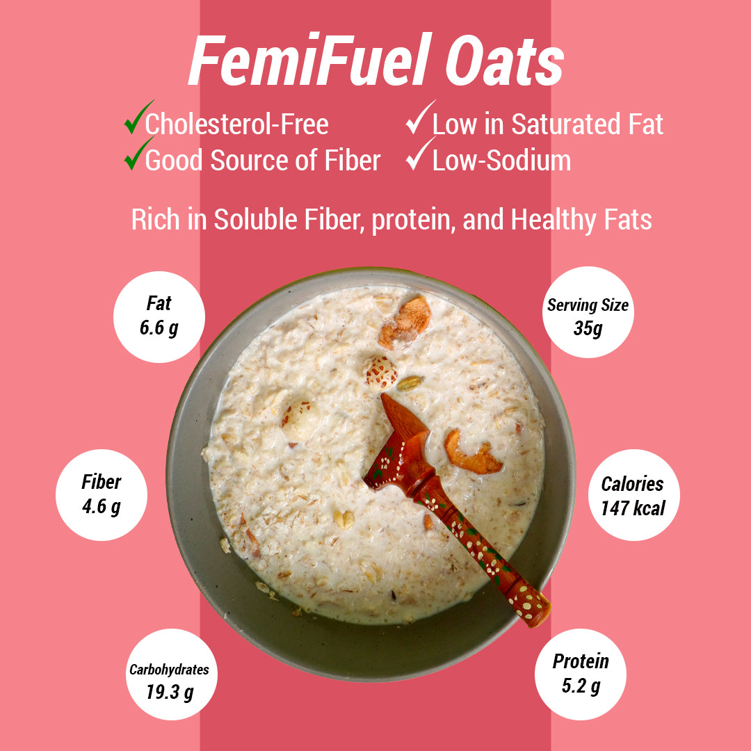 FemiFuel Oats a thoughtfully curated blend tailored to support women’s hormonal balance, natural energy, and overall wellness. Whether you're aiming to lose weight, boost skin health, or maintain digestive harmony, this nutrient-dense powerhouse has you covered from within.